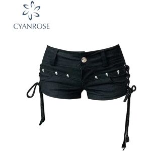 Short en jean gothique noir pour femme, short en taille basse, esthétique vintage coréenne, Harajuku Y2k, pantalon court Cowboy, vêtements d'été